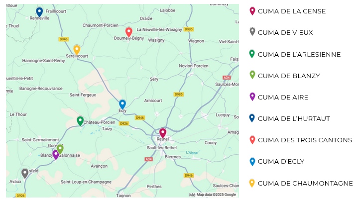 Après la présentation individuelle de chaque CUMA, l’animatrice de la FDCUMA avait préparé, une cartographie démontrant la répartition CUMA sur le secteur défini.
